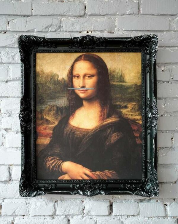 If Mona Lisa lived in our time, she would definitely laugh at this picture. In the meantime – balancing a pencil between her lip and nose. A classic with a touch of irony that will make guests smile